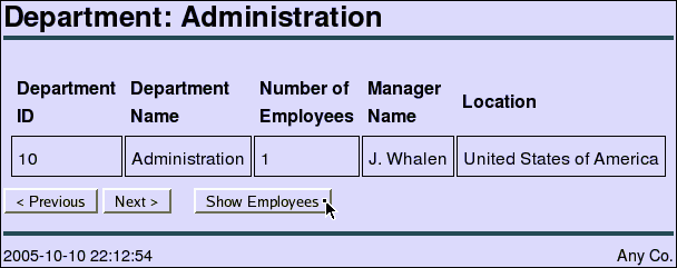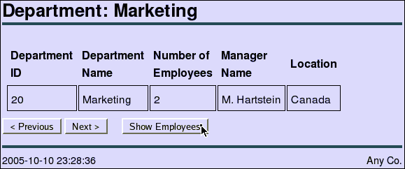 この項では、参照カーソルを使用して、特定の部門の従業員を取り出します。