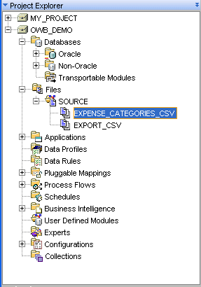 この例では、2つのフラット・ファイルに対して1つの場所のみ所有するので、プロジェクト・エクスプローラに1つのモジュールを作成します。OWB_DEMO