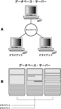 Oracle Databaseシステムの環境では、データベース・アプリケーションとデータベースは2つの部分に分離されています。フロントエンド、すなわちクライアント部分と、バックエンド、すなわちサーバー部分です。このため、クライアント/サーバー・アーキテクチャと名付けられています。クライアントでは、データベース情報にアクセスし、キーボード、スクリーンおよびマウスなどのポインティング・デバイスを使用してユーザーと対話する、データベース・アプリケーションが実行されます。サーバーでは、Oracle Databaseソフトウェアが実行され、Oracleデータベースへの同時実行の共有データ・アクセスに必要な機能が処理されます。