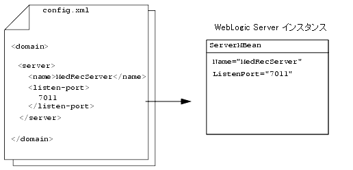 コンフィグレーション MBean を使用することで、ドメイン内の各サーバ インスタンスは、ドメインのコンフィグレーションをメモリ内で表現したものを保持できます。