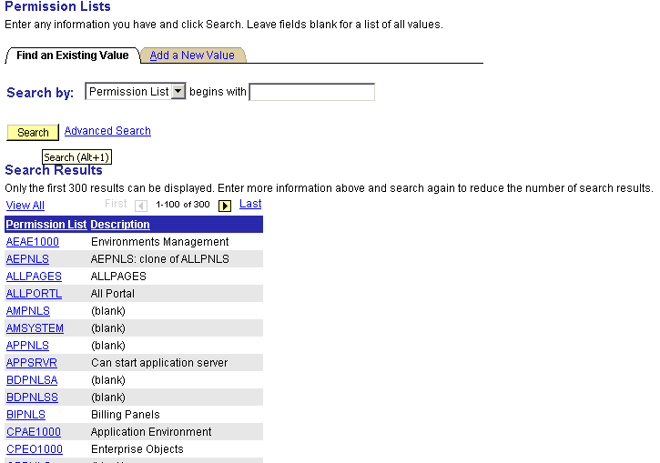 アプリケーション・エクスプローラには、前の手順でインポートおよびビルドしたコンポーネント・インタフェースが必要です。このため、アプリケーション・エクスプローラのすべてのユーザーがこれらのコンポーネント・インタフェースにアクセスできることを確認する必要があります。すべてのPeopleSoftのオブジェクトと同様に、セキュリティは権限リストレベルで割り当てられます。サイトのセキュリティ要件を検討して、どのユーザーがアプリケーション・エクスプローラを使用するかを決定し、次にそれらのユーザーの権限リストごとにコンポーネント・インタフェースのセキュリティを設定します。