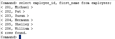 a. (TimesTenとOracleの両方のパスワードを渡して)キャッシュ表ユーザーhrとしてttIsqlにログインします。 connect "dsn=cachedb1_1121;uid=hr; pwd=hr; oraclepwd=hr"; b. 前述のLOAD CACHE GROUP文からロードされたレコードをリストするには、hr.employees表から選択します。 select employee_id, first_name from employees; c. 動的キャッシュ・グループにデータをロードするには、キャッシュ表の主キーまたは外部キーに対する問合せで、等価句WHEREを使用する必要があります。