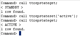call ttrepstart;b. ttRepStateGet組込みプロシージャを使用して、スタンバイ・キャッシュ・データベースがスタンバイ状態になっていることを確認します。 call ttrepstateget;