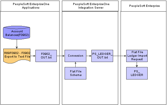 PeopleSoft designed the integration to be run as a batch process at the end of various periods, such as week, month, quarter, or year to move JD Edwards EnterpriseOne general ledger balances to the PeopleSoft Enterprise system. However, you can run the process on a one-time basis at any time. The primary purpose of the integration is to provide information for consolidations and reporting in the PeopleSoft Enterprise system. The integration does not support the movement of information from the PeopleSoft Enterprise system to the JD Edwards EnterpriseOne system.