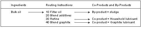 This example illustrates the ingredients, routing instructions in operation number sequence, and the co-products and by-products that the graphite lubricant batch process produces: