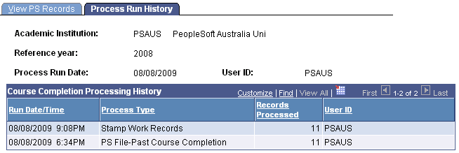 Records and Enrollment, Enrollment Reporting, AUS Regulatory Reporting, DEEWR, View Course Completion Records, View PS Records |