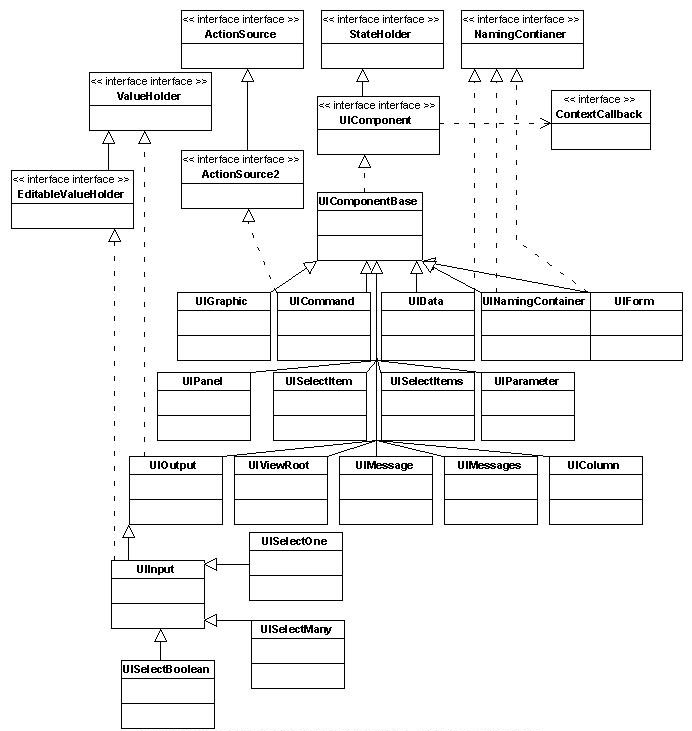 | UIComponent | UIComponent is the base class for all user interface components in JavaServer Faces. |