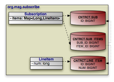 @JoinTable(name="SUB_ITEMS", schema="CNTRCT",