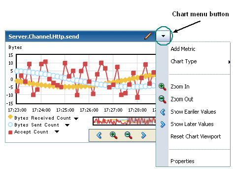 To select the chart menu, choose the menu button in the chart's title bar.