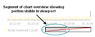 The dark grey segment of the chart overview indicates the portion of the chart that is visible in the viewport. You can use this segment as a scrollbar to pan the chart's data, as explained in Pan and zoom the metrics data shown in a chart.