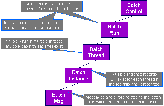 The following diagram illustrates the relationships that exist for batch control records. This picture is meant for your technical staff.