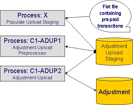The following points describe, at a high level, the first phase of the adjustment upload pre-process: