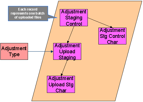 · Check that the record count on the adjustment staging control record equals the number of adjustment upload staging records that are linked to the adjustment staging control.