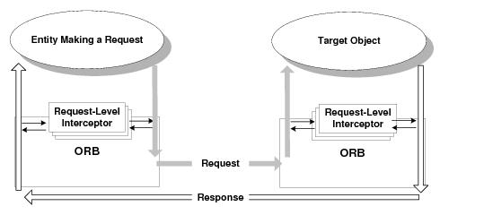 A request-level interceptor is a user-written CORBA object that provides a means to insert functionality, such as security or monitoring components, into the invocation path between the client and server components of a CORBA application. When you have an interceptor installed and registered with an Object Request Broker (ORB) on a particular machine, the interceptor is involved with all the CORBA applications on that machine. You can use interceptors to insert any additional functionality into the invocation path of an object invocation, at either the client, or the server, or both ends of the invocation.