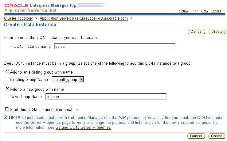 詳細は、『Oracle Containers for J2EE構成および管理ガイド』の「クラスタおよびOC4Jグループの構成と管理」を参照してください。