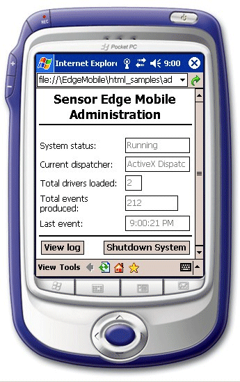 Sensor Edge Mobileの設計は、アプリケーション・プログラマがデバイスから発信されたイベントに簡単にアクセスし、デバイスに命令を発行できるようになっています。アプリケーションは、直接ディスパッチャと通信することも、(ActiveXコントロールなどの)別のレイヤーを介してディスパッチャと通信することもできます。