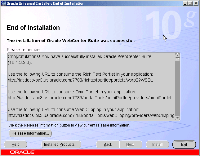 この画面には、インストールが成功したかどうかが示され、製品リリース・ノートのリンクが表示されます。