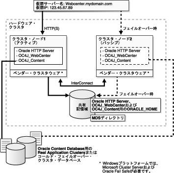 Oracle WebCenter FrameworkおよびOracle Content DBを実行するハードウェア・クラスタへのインストールを実行する場合は、次の2つのタイプのインストールを実行する必要があります。