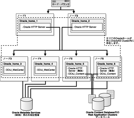 Oracle WebCenter FrameworkおよびOracle Content DBを実行するノードでは、次の2つのタイプのインストールを各ノードで実行する必要があります。