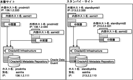 OracleASリリース10.1.3.2.0では、本番サイトとスタンバイ・サイトでの中間層インストールのみを行うことができます。