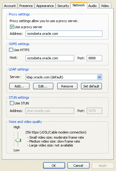 インストール中にテスト・ユーザーを作成した場合は、Oracle Communicatorを使用してOCMSに接続する準備はできています。Oracle Communicatorをインストールおよび構成して、インストール中に作成したテスト・ユーザーの1人としてサインインします。