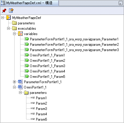 「Param1」は、「MyWeatherPageDef¥executables¥OmniPortlet1_1¥parameters」の下にあります。