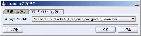 ポートレットをページ上にドロップすると、JDeveloperによって、ポートレットがパブリック・ポートレット・パラメータを持つかどうかが確認され、持つ場合は、対応する数のページ変数が自動的に追加されてポートレット・パラメータにマップされます。