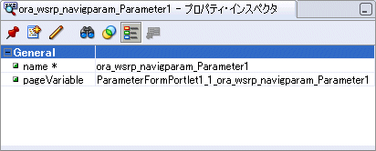 プロパティ・インスペクタを使用して、マッピングの1つを調べます。たとえば、ora_wsrp_navigparam_Parameter1が、ParameterFormPortlet1_1_ora_wsrp_navigparam_Parameter1という名前のページ変数にマップされています(図6-11)。
