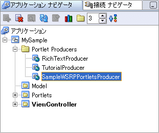 アプリケーション・ナビゲータで、「Portlet Producers」セクションの下に、新しいプロデューサが表示されます(図6-3)。