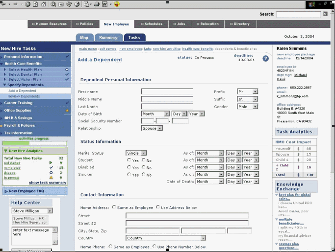 この例では、入社したばかりのユーザーが、会社の保険契約に扶養家族を追加できるアプリケーションを使用しています。トランザクションそのものの周囲に、次のようなユーザーの理解を助けるコンテキストが他にもあることに注意してください。