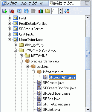 SRDemoSample_Starterアプリケーションには、すでにログイン・ページSRLogin.jspxが含まれています。このページは、図6-2に示す場所にあります。