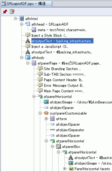 SRLoginADF.jspxページの「構造」ペインで、「panelPag」ノードを開き、Messagesコンポーネントをmessagesファセットの上にドラッグします。
