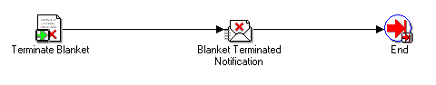 The Terminate - Blanket subprocess is included in the seeded Blanket workflows. Terminate - Blanket is initiated if it is part of the Blanket workflow that is attached to the transaction type for the sales document.