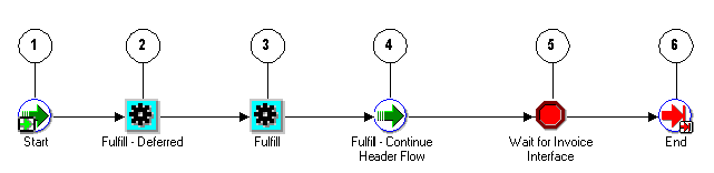 The Header Level Invoice Interface - Order subprocess conducts a series of activities that interface with Oracle Receivable to determine invoicing information for an order. Header Level Invoice Interface - Order is a non-runnable flow that is initiated as a subprocess of the following order flow: