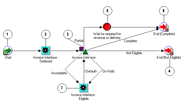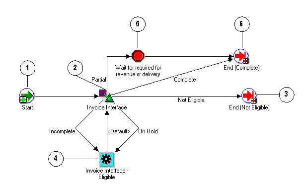 The Header Level Invoice Interface - Order process ends only after header level invoice information for an order is determined. After this information is received, the subprocess ends and returns to the line flow.