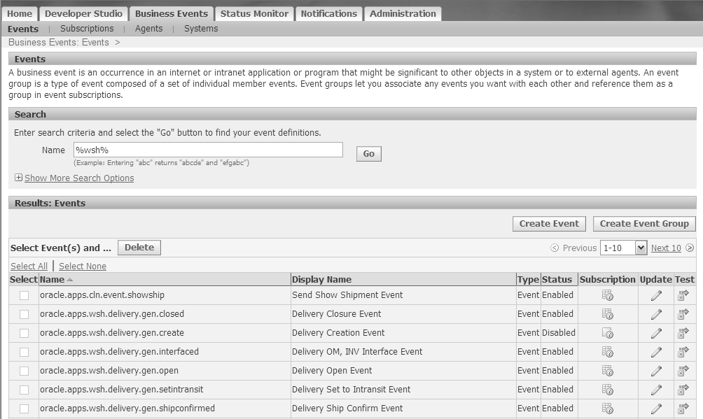 For a list of shipping business events, please refer to the Oracle Shipping Execution Implementation Guide.