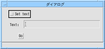 これは単なる表面的な変更です。ボタンのラベルは「Go」、ラベルは「Text:」、 トグルのラベルは「Set text」に設定します。