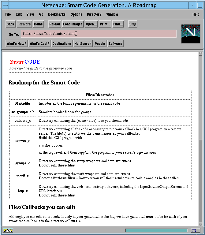 他のファイルへのハイパーテキストリンクもあり、これも Sun WorkShop Visual によって生成されたものです。リンク先のファイルには、グループと Motif「ラッパー」ごとに生成されるコードが記述されています。