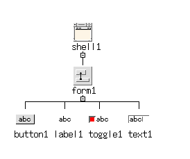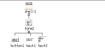 1. 図 17-9 に示す階層を作成します。これは、シェル -> フォーム -> {ボタン、テキストフィールド、テキスト} で構成されています。
