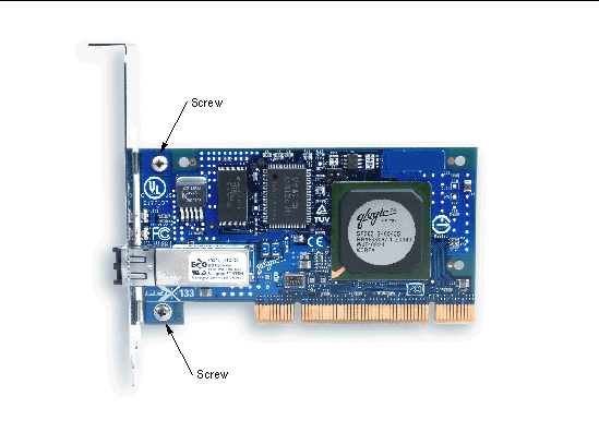 Note - If you are installing the Sun StorEdge 2 Gb FC Entry-Level PCI-X Single Channel HBA in a Windows system, see Step 4 of To Download and Install the Windows HBA Driver before installing the HBA into your system. |