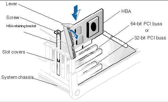 6. Refasten the retaining bracket of the HBA by using the existing screw or lever.