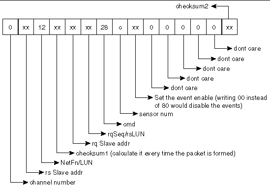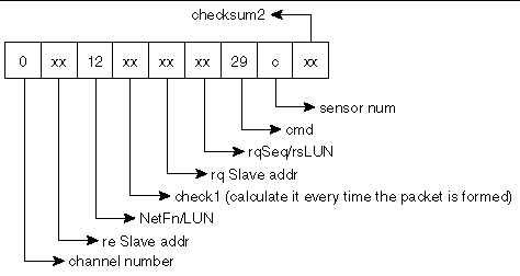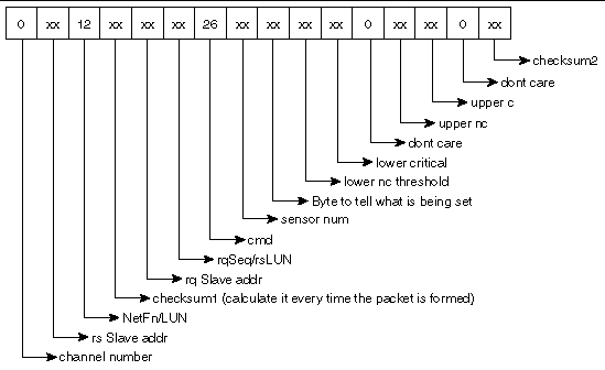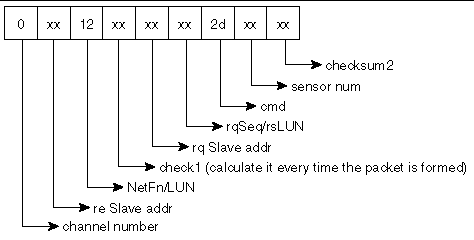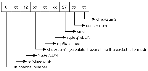 Note - The NetFN/LUN for all sensor IPMI commands is 12, which implies that the netFn is 0x04 lun= 0x2. |