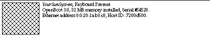 The banner screen identifies the system type, the amount of memory installed, the Host ID, and the Ethernet address. Note that the information displayed is different for every system.