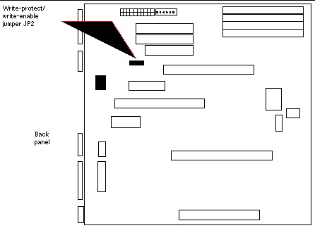 For systemss covered in this guide, you set the write-protect/write-enable jumper to write-enable by moving the jumper to pins 2 and 3 (see FIGURE 1-1).