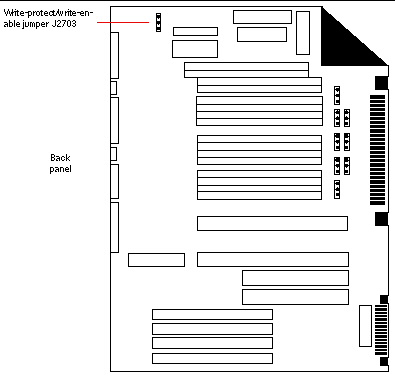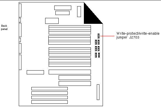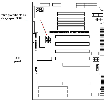 Before updating the flash PROM, use this procedure to change the write-protect/write-enable jumper or keyswitch setting.