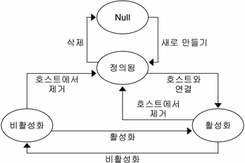 그림 3–2는 컨테이너가 호스트와 연결된 후 활성화 상태로 이동하는 프로젝트를 표시합니다. 이것이 비활성화되고 호스트와 더 이상 연결되지 않으면 나면 정의됨 상태로 비활성 프로젝트가 다시 이동할 수 있습니다.