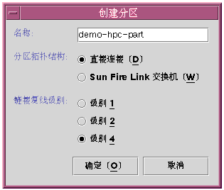 分区拓扑结构 | 指定分区拓扑结构,或为直接连接,或为通过 Sun Fire Link 交换机连接。 |