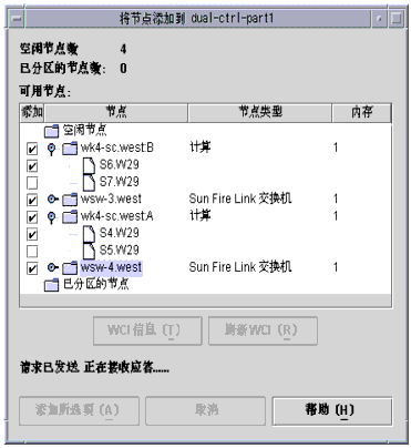 7. 选中所有要添加到分区的节点和交换机后,单击“添加选中的节点”。