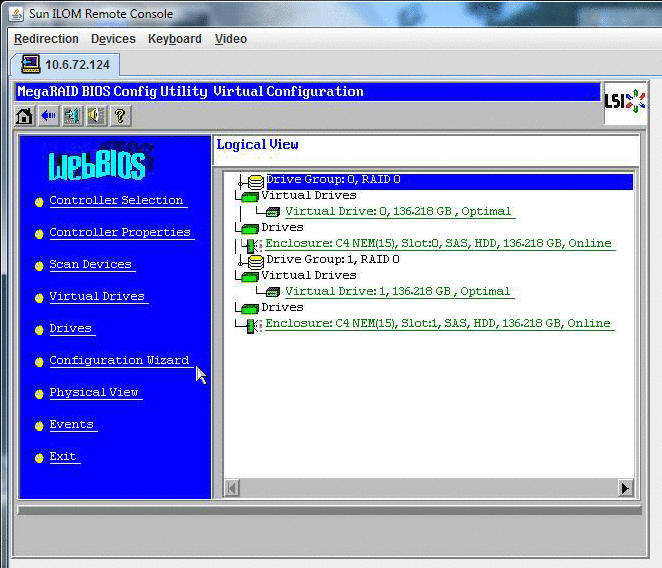 此时,将打开 "MegaRaid BIOS Config Utility Virtual Configuration" 屏幕。