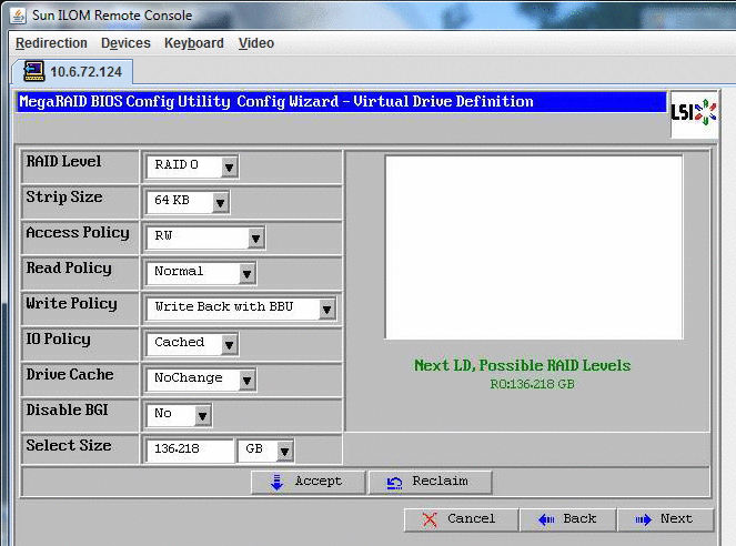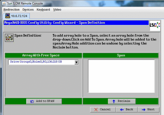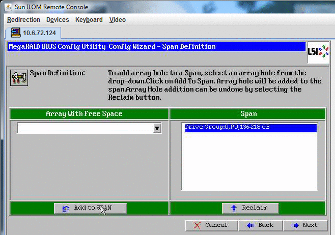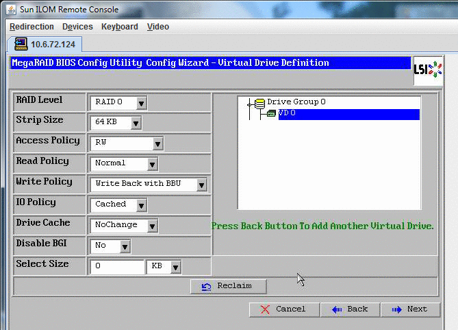注 - 您可以通过单击 "Reclaim" 按钮撤销驱动器组的选择。